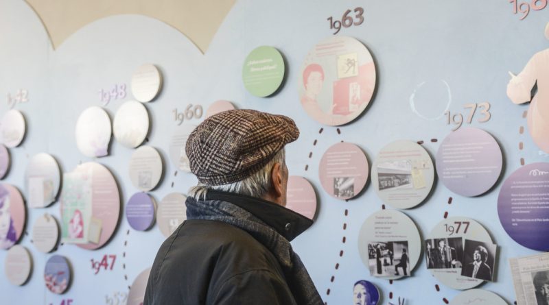 El mural está formado por decenas de circulitos de colores que encierran frases, fotos y recortes sobre María Elena, muchos expresados en primera persona, como si fuera ella misma la que nos cuenta su historia: “Mi papá compró esta casa den 1923”, “Me gustaba la revista Pif Paf y Billiken”, “Fui a la escuela N°21”, “Fui abanderada”, son algunas de las frases iniciales de este recorrido.