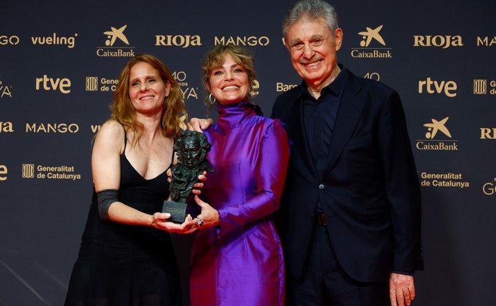 “Ustedes que tienen tiempo aún, no caigan en la trampa -continuó-. La ultraderecha vino a destruirlo todo, eso es así. Yo vengo del futuro (la interrumpen aplausos), vengo del futuro de un país donde el Presidente incluso puso en venta el agua (en mención a la modificación de la Ley de glaciares), o sea que ya no solo defendemos el cine, estamos teniendo que defender el agua…”.Dolores Fonzi con el Goya, junto a los productores Leticia Cristi y Hugo Sigman. Foto EFE